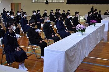 3月の村所小学校卒業式から、約2週間しか経っていませんが、制服姿も板に着いて、すっかり中学生の雰囲気を感じました。また、入学式でのはつらつとした返事やしっかりと前を見つめる眼差しに、中学校生活への意気込みを感じました。
