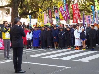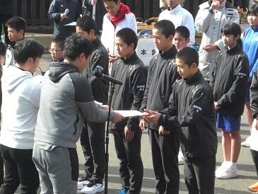 昨日(13日・成人の日)、宮崎市内で開催され、本校の那須心美さん(2年)、黒木琉偉君(2年)、濵砂康生君(3年)が中学生区間を走りました。他の選手の方々もそうですが、この日に備えて寒い中で寸暇を惜しんで練習に励んでいたようです。お疲れさまでした。