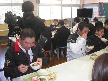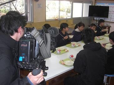 このところ、NHK宮崎放送局の方が西米良の暮らしを取材しておられます。西米良特産の糸巻き大根を取材する中で、学校給食にも使われているということで給食の様子を取材に来られました。テレビ取材の現場に居合わせることができたのもいい経験です。