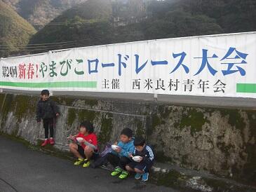 昨日(19日)、西米良村青年会主催で開催され、1・2年生が力走しました。沿道の方々が、知り合いの子どもたちが走って来るのを心待ちにされている様子に「子供は村の宝」という言葉を実感しました。豚汁の振る舞いや餅まきなどもあり、楽しいひとときでした。西米良村青年会の皆様、ありがとうございました。