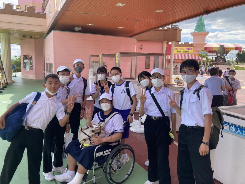 修学旅行最終日のお楽しみ、グリーンランドに来ています。炎天下で、なかなか過酷な状況ではありますが、子どもたちは存分に楽しんでいる様子です。絶叫系が大丈夫なグループと苦手なグループに分かれて行動したり、みんなで集まってご飯を食べたり、変幻自在に行動しています。14:40に集合して、こちらを出発する予定です。