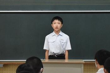 7月20日(火)、1学期終業式を行いました。はじめに、5名の生徒が1学期の反省と2学期の抱負について発表しました。これまでの自分の取り組みを振り返り、今後に生かしていきたいという意気込みがとても感じられる発表でした。