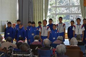 全校生徒で特別養護老人ホーム天包荘を訪問して交流をしました。MRTテレビの方も取材に来られました。11月12日(火)夕方の番組の中で放送される予定だそうです。