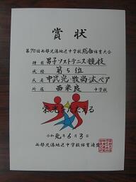 昨日実施された「西都児湯地区中学校総合体育大会」の賞状です。