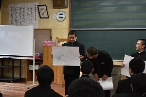 朝の時間に生徒会集会をしました。各委員会からの連絡などの後で「ドローイング チャレンジ」というゲームをしました。これは、グループのメンバーが片方の手の人差し指だけで道具を支えて紙に絵を描く、というものです。コミュニケーションは言葉だけで、使ってない方の手で指示するようなことはできず、なかなか苦労していましたが、そこがこのゲームのおもしろいところでした。スタートの号令ですぐに描き始めて、それなりの絵を描けるところは、仲のよさの表れだと思いました。