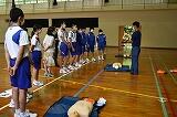 3密を避けるため、講師の方に様々な対応策を講じていただき、無事、講習会を終えることができました。生徒たちは真剣に「胸骨圧迫」、「AEDの使い方」について学んでいました。