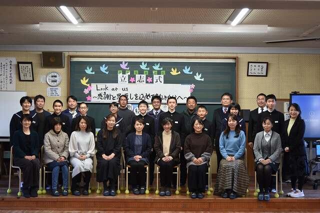 1月19日(水)、立志式を行いました。2年生9名が、それぞれ「志」を立て、これからの目標や夢を保護者、1・3年生や先生方が見守る中、力強く発表することができました。
