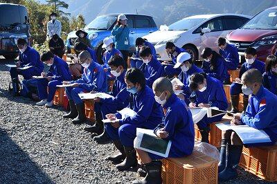 11月4日(木)、天包山ゆず団地にて全学年を対象に、今年度最後の村応援プロジェクトが行われました。ゆず生産の工夫や努力、地域のつながりについて、講師の濵砂貴志氏より説明がありました。ゆずの名産地でもある西米良村での貴重な農業体験を通して、生徒自身さまざまなことを学ぶことができました。