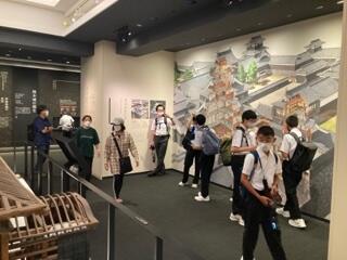 熊本地震の震災の爪痕がまだ残るものの、天守閣は立派に再建されて、上まで登ることができました。男子は階段で、女子はエレベーターで、展示物を見ながら登りました。みんな、写真を撮りながら熱心に見学していましたよ。