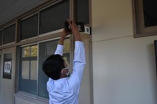 3月14日(火)、3年生が技術の時間に作った卒業記念製作「教室ネームプレート」を設置してくれました。手作り感が伝わってくる、とても味わいのあるネームプレートです。学校中のすべての教室の分、作るのはとても大変だったことと思います。本当にありがとうございました。このプレートを見るたびに、みんなのことを思い出すことでしょう。