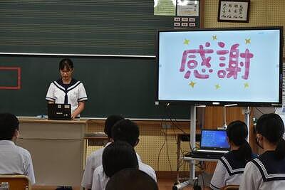 代表者作文発表では、各学年の代表が1学期の反省とそれを生かした2学期での目標を述べていました。2学期には、メラリンピックやイキイキ文化祭をはじめ、多くの行事が行われます。忙しい学期になるかとは思いますが、全校生徒と全職員で力を合わせ、1つ1つの行事を成功させましょう!!