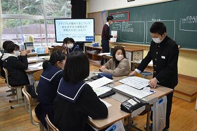 家庭でのインターネットの使い方について生徒と保護者がそれぞれの立場で意見を出し合っており、とても深い学びになっていたと感じます!最終的には、生徒が自主的に取り組みを行えるように課題についての解決策を生徒主体で考えさせ、今後の生活で生かせるような授業になりました!!