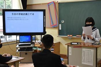 4校時に生徒総会に向けて、第1回学級討議を行いました。討議の内容は、「西米良中学校の現状と課題を挙げたうえで、生徒会スローガン案について」でした。また、学校への要望も合わせて、それぞれの学年が考えや意見を発表し、クラスでまとめました!