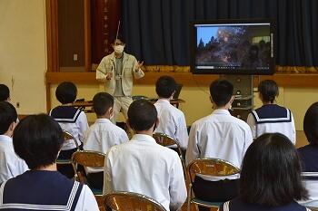 5月28日(金)、地域振興支援員の黒木 敬介氏より「西米良を知る」をテーマに講話をしていただきました。米良について、西米良の歴史・伝説など様々なことを学ぶことができました。