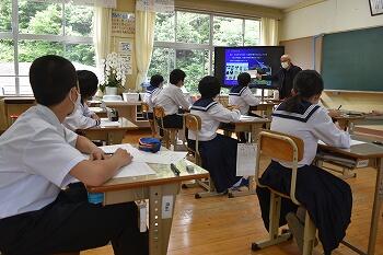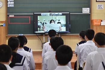 5月25日(火)、湯前中学校との交流会を行いました。今回で63回目の伝統を誇るこの交流会は、コロナ禍の中、昨年度は中止されましたが、本年度はリモートで実施することができました。