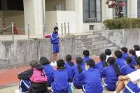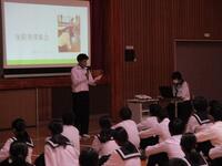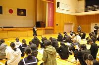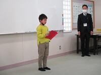 今年度最後の参観日が実施されました。1、3年生は参観授業、2年生は立志式とチンドン屋さんの宮田若奈さんによる講演が行われました。立志式では全員で誓いの言葉を唱和した後、1人ずつ自分で決めた立志の漢字を手に、立志の言葉を述べました。(2月24日)