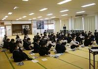 4月から新しく出発する木城学園のリーダーとなる、新しい生徒会役員と専門委員長の任命式がありました。来年度からは、中学校2年生が生徒会のリーダーとなります。新生徒会長になる1Aの石井さんが、新しい生徒会長としての意気込みを発表しました。(3月9日)
