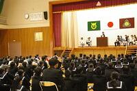 今年度を締めくくる修了式がありました。今回は、新校舎への引越しのため、いつもより数日早くなっています。木城小・中学校の全員が木城中の体育館に集まり参加しました。木城小・中学校としては最後の修了式となります。それぞれの学校の校歌を歌って式を締めくくりました。4月に新しい学校で新学年を迎えます。(3月20日)