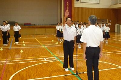 本日の朝、9月29日(土)から始まる西都児湯地区中学校秋季体育大会に向けての選手推戴式を体育館で実施しました。