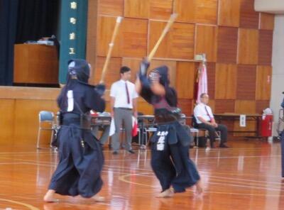 続いて剣道です。男女とも個人戦に出場しました。その中で、1年生の鎌田君が第3位に入る活躍を見せてくれました。県大会にも出場します。おめでとう!
