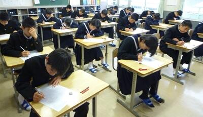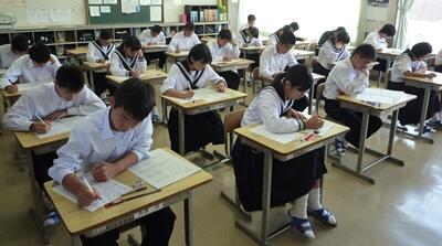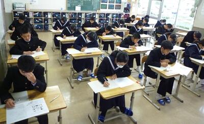 このテストは、東児湯5町のすべての学校の生徒が参加し、優秀な人や学校は表彰されます。写真は上から、1年、2年、3年の教室の様子です。