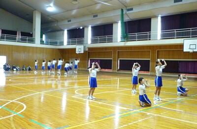 本日の朝、体育館で、生徒集会と県の中体連大会の推戴式を行いました。
