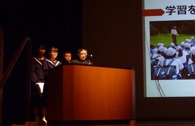 最後に、代表で3年生の濱砂さんが、英語でお礼の言葉を述べました。写真はそのときの様子です。