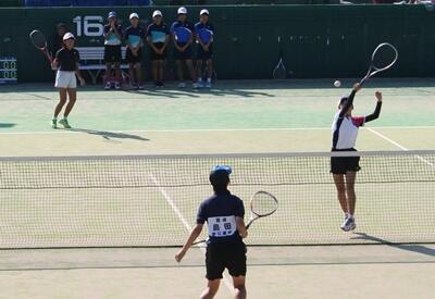 この中で、女子ソフトテニスが3位に入る大健闘をを見せてくれました。県でベスト4は立派です!おめでとう!写真は、赤江東中との1回戦の様子です。