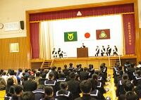 4月から新しく出発する木城学園のリーダーとなる、新しい生徒会役員と専門委員長の任命式がありました。来年度からは、中学校2年生が生徒会のリーダーとなります。新生徒会長になる1Aの石井さんが、新しい生徒会長としての意気込みを発表しました。(3月9日)