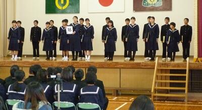 最後に、1・2年生と先生方からのメッセージビデオをみんなで見ました。そして、1年生と2年生から3年生に贈る言葉があり、3年生からはお礼の言葉と、合唱をプレゼントしてくれました。