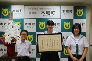 子供の読書活動優秀実践校(文部科学大臣表彰)、全国中学校体育大会出場(柔道)、九州中学校体育大会出場(体操)について町への報告を行いました。