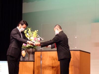 町青少年育成会議から3年生薮押くんが生徒会活動や体育大会団長、柔道クラブ主将、神楽伝承の取組等が認められ、町生涯学習のつどいの場で表彰されました。