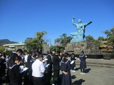 新型コロナウイルス感染症も全国的に落ち着いていたことから、2年生の修学旅行を実施しました。長崎県を2泊3日の行程で見学し、がまだすドーム(雲仙岳災害記念館)や平和公園、出島ワーフ、ハウステンボス等々長崎の名所旧跡を巡り、楽しい想い出がたくさんできた修学旅行でした。
