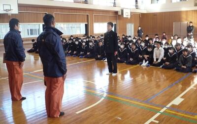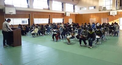 その後、体育館で担当の先生から、学習面や生活面、入学の準備についての話がありました。