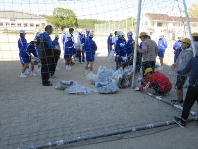 その後、グランドにゴミを持ち帰り、分別をして本日の活動は終了しました。児童・生徒たちが地域の環境美化に貢献してくれたことをうれしく思いました。