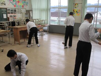 冬休みも終わり、今日から3学期が始まりました。生徒たちは元気に登校し、学校ににぎやかさが戻ってきました。朝、大清掃をみんなで行い、始業式に臨みました。