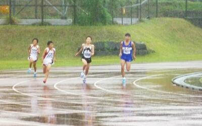 本校からは。陸上部を中心にその他の部の選手も含め参加しました。あいにくの雨でグラウンドコンディションの悪い中でしたが、選手は一生懸命がんばりました。写真は1年男子200m決勝の様子です。右から2番目、黒のユニホームが本校の南村君です。
