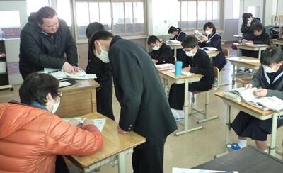 生徒は、事前に勉強する教科を決め、その教室に移動し、自学自習をしながら、先生に質問したり、友達同士で教え合ったりしました。写真は上が英語、下が数学のクラスの様子です。