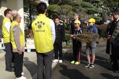 ライオンズクラブから木城小と木城中にあわせて80本の竹ぼうきを寄贈していただき、本日の午後、その贈呈式が行われました。