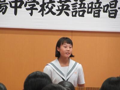 木城中からは、暗唱の部に2名の生徒が参加しました。二人とも夏休み中からずっと練習を重ね、身振り手振りを加えながら、見事な英語暗唱を披露してくれました。