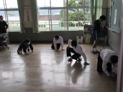現在、生徒たちは体育の授業で柔道とダンスをしています。柔道は町の柔道場をお借りして、ダンスは体育館で活動しています。どちらもみんな一生懸命に取り組んでいます。今日は気温が低く寒い日でしたが、寒さを吹っ飛ばすような熱気ある授業が行われていました。