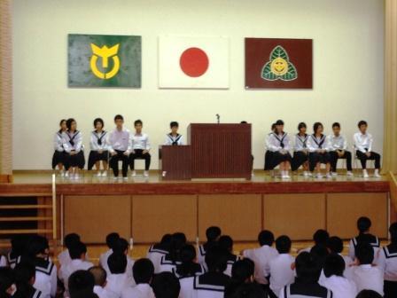 今朝、生徒集会が行われました。4,5月の取組の反省が行われた後