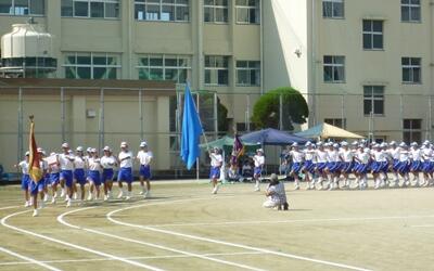 午後の最初は部活動紹介。5つの部と2つのクラブが行進した後、PTA保体部長さんから、励ましの言葉をいただきました。