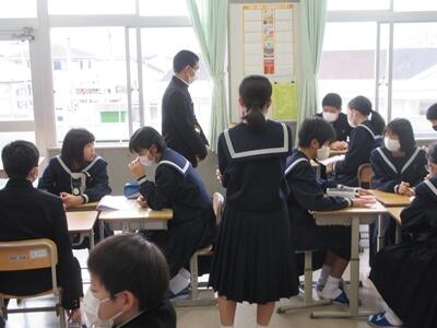 2校時に木城町教育委員会の恵利修二教育長が生徒たちの様子を見に来校されました。明日は、2・3年生が登校します。