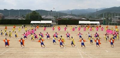 全校生徒によるダンス「福智王」。はっぴを着ると一段と見栄えがいいですね!