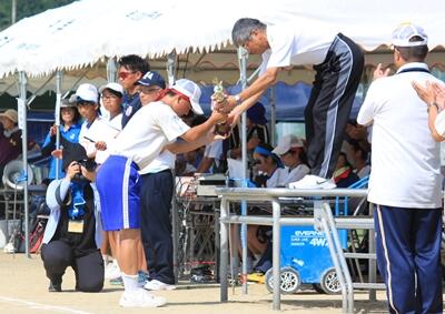 1年生の団技「台風の目」の一コマ。赤も青もガンバレ!