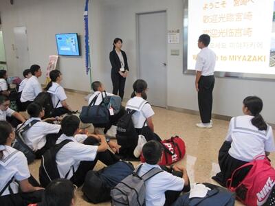 宮崎空港に到着後、帰着式を行いました。三日間お世話になった添乗員さんにお礼を言いました。