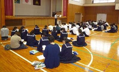昨年、木城小で授業を受けた生徒も多く、また、先生のユーモアも交えながらの優しい語り口のおかげで、和やかな雰囲気で授業が進みました。