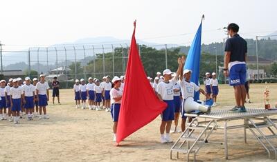 今日は、昨日も練習した入場行進と開会式を通して練習しました。