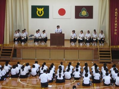 本日の午後、生徒会役員改選に伴う立会演説会と投票が行われました。1・2年生15名が生徒会本部役員に立候補し、熱い思いを語ってくれました。みんな木城中をもっとよい学校にしたいという気持ちを持っていました。